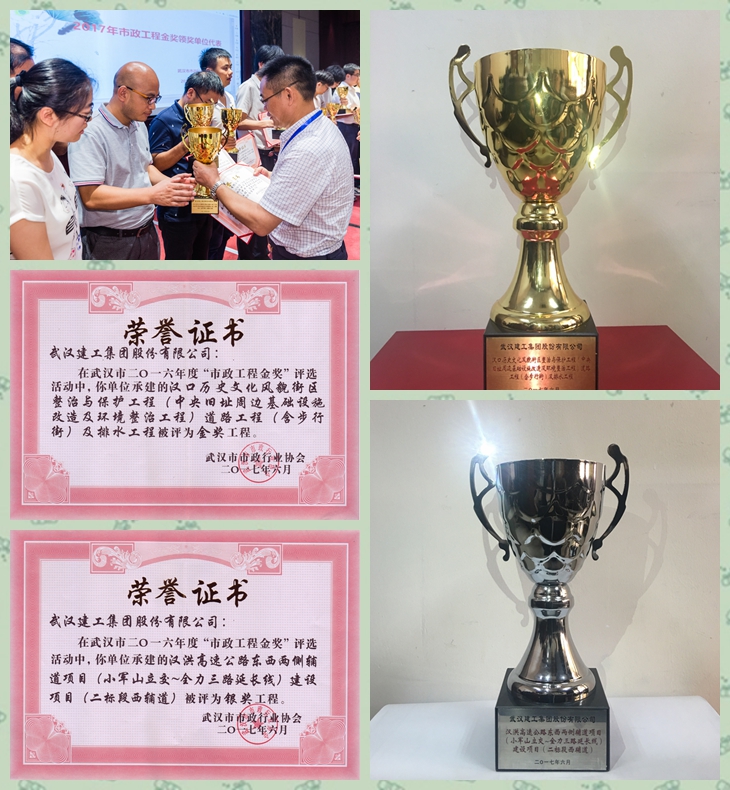 7月28日, 2016年度武漢市市政工程金獎表彰大會在武漢會議中心圓滿舉行,由路橋分公司申報(bào)的兩項(xiàng)工程喜摘武漢市“市政金杯金獎”一金一銀。